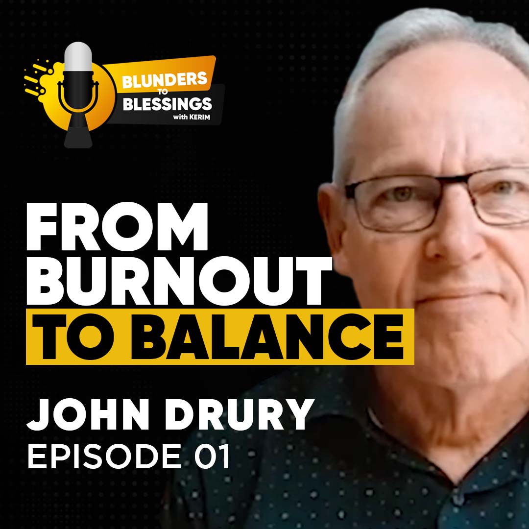 In this episode of Blunders to Blessings, host Kerim interviews John Drury, a seasoned leader with over 40 years of experience. John shares his transformative journey from burnout in 2007 to becoming an executive coach and business mentor. He discusses the redefinition of failure, emphasizing that it is merely feedback and part of the growth process. John highlights the importance of trusting your instincts and personal connections in leadership roles. He also elaborates on the myth of work-life balance, advocating for a more integrated approach to managing personal and professional life. Key takeaways from the episode include the significance of learning from adversity, building trust through personal connections, and the need for deliberate planning in achieving holistic success.